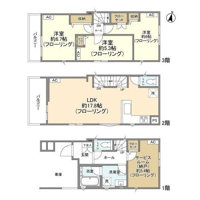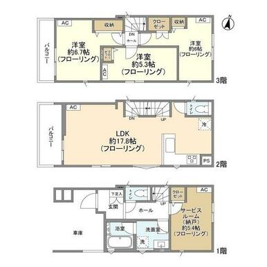 3SLDK(S(納戸)5.4 LDK17.8 洋6.7 洋6 洋5.3) |